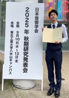 工学府知能情報システム工学専攻1年の内田蓮さんが日本音響学会「第30回学生優秀発表賞」を受賞