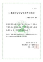 自然科学研究科 地球科学コースの4名の大学院生が,日本地質学会第132年学術大会において,優秀学生発表賞を受賞しました