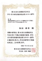 農学府農学専攻1年の和田康希さんが第66回大気環境学会年会「学生・若手研究者優秀発表賞」を受賞
