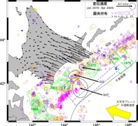 過去の津波堆積物の研究から、千島海溝南西部(北海道太平洋沖)では、約400年に一度、海溝軸まで断層破壊が及ぶ超巨大地震が発生してきた可能性が示されていました。陸域の測地観測網(GNSS)は海溝から遠すぎるため、海溝付近のプレート境界の状態を正確に把握することは困難でした。東北大学災害科学国際研究所、東北大学大学院理学研究科、北海道大学、海洋研究開発機構(JAMSTEC)の共同研究チームは、2019年から5年間にわたり、根室沖の海底3地点でGNSS測位と音響測距技術を組み合わせた海底地殻変動観測(GNSS-A観測)を実施、海溝付近のプレート境界が現在は強く固着している直接的な証拠を得...