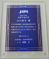 農林海洋科学部の山口晴生教授が、日本水産学会「水産学進歩賞」を受賞しました